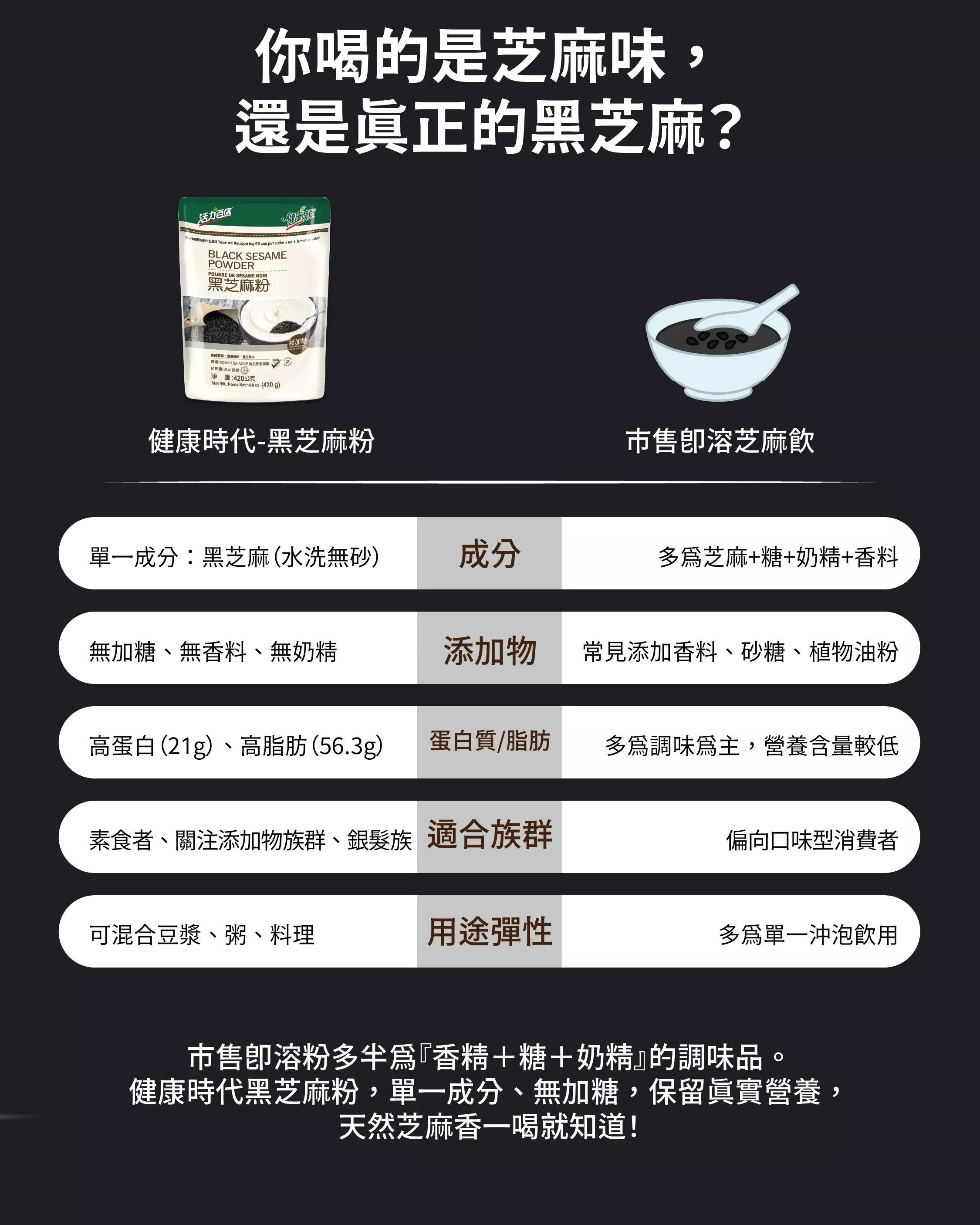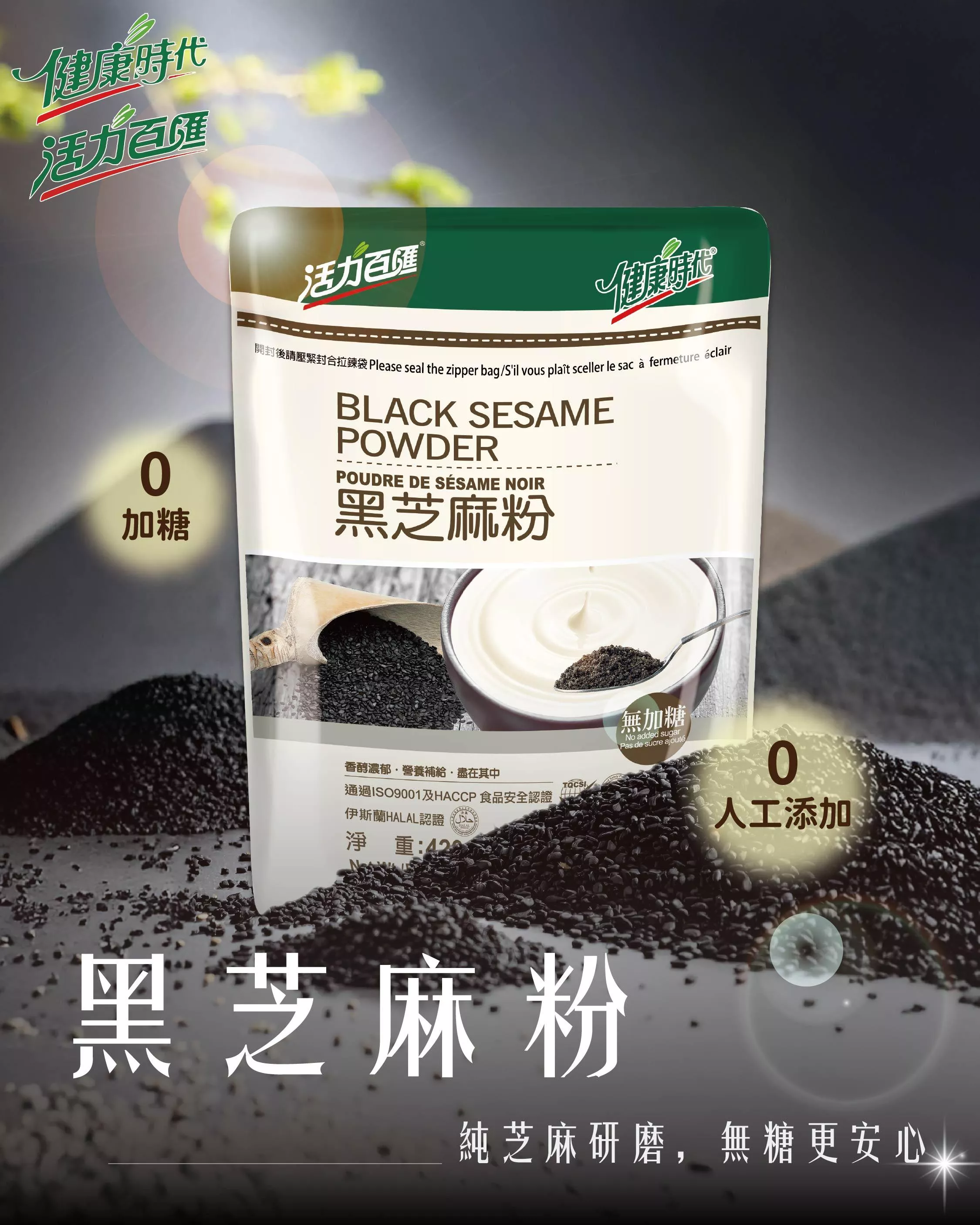 健康時代黑芝麻粉,口感細膩滑順,讓您輕鬆享受濃郁芝麻香氣。