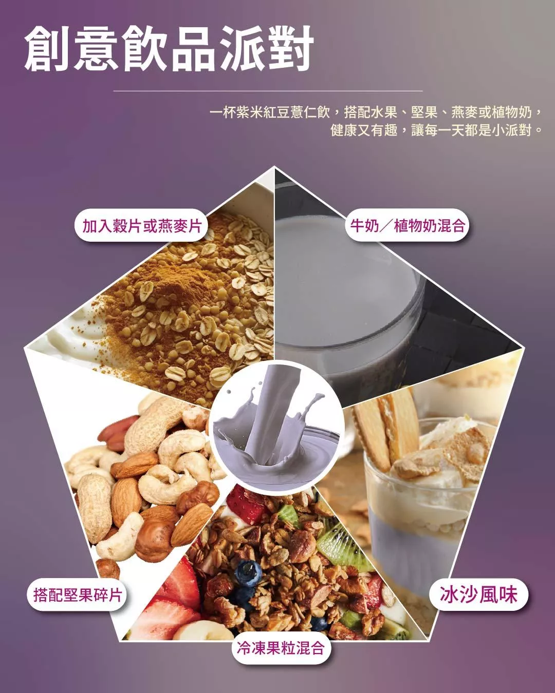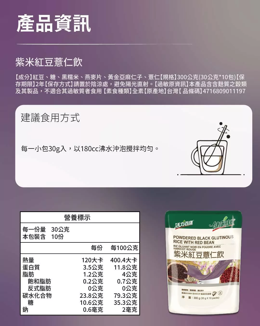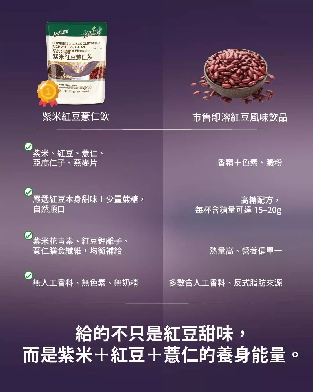 紫米紅豆薏仁融合,口感豐富,每一口都是滿滿的幸福滋味享受。