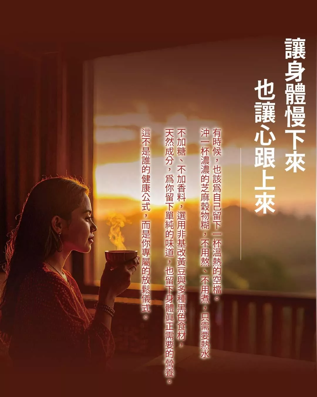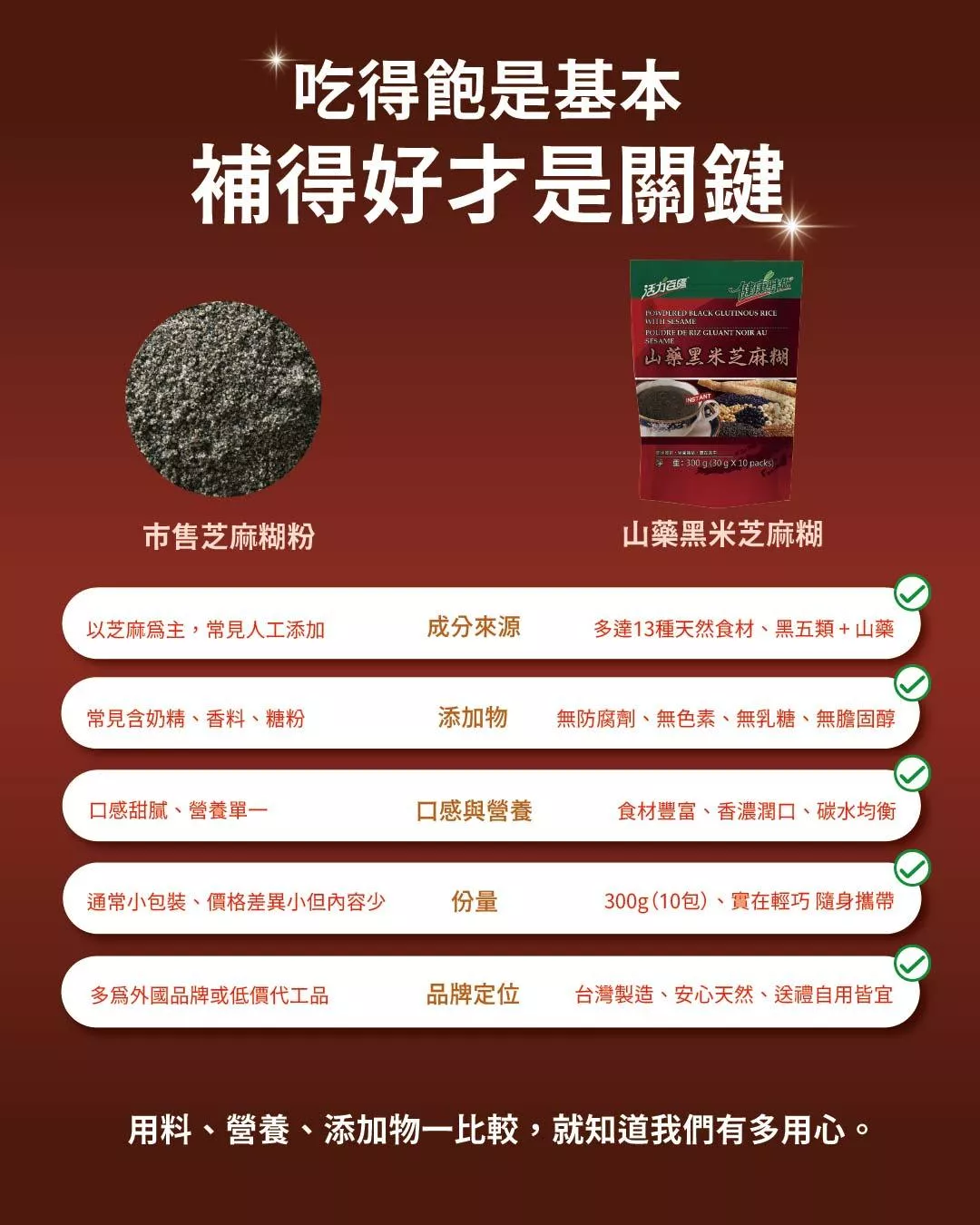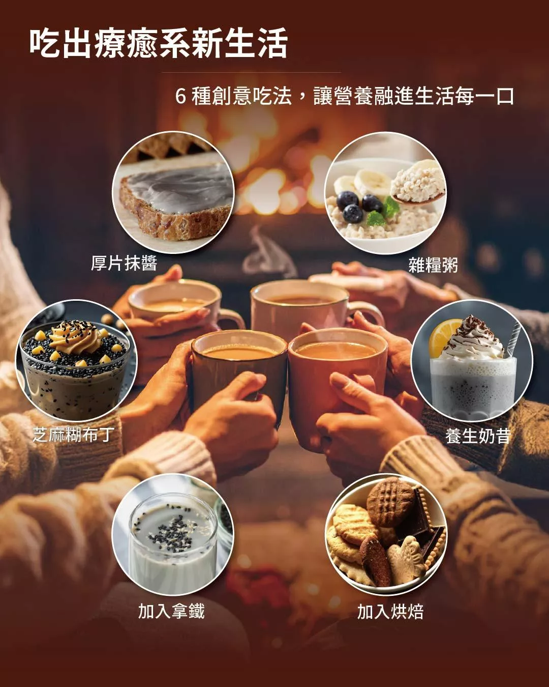 本產品係添加山藥、黑米等多種滋養配方調配而成,採用上等黑芝麻、水洗無沙,糊化效果佳,顆粒細微、不易沉澱、好消化、好吸收、營養不流失;口感香醇濃郁、甜而不膩,美味可口,老少咸宜。